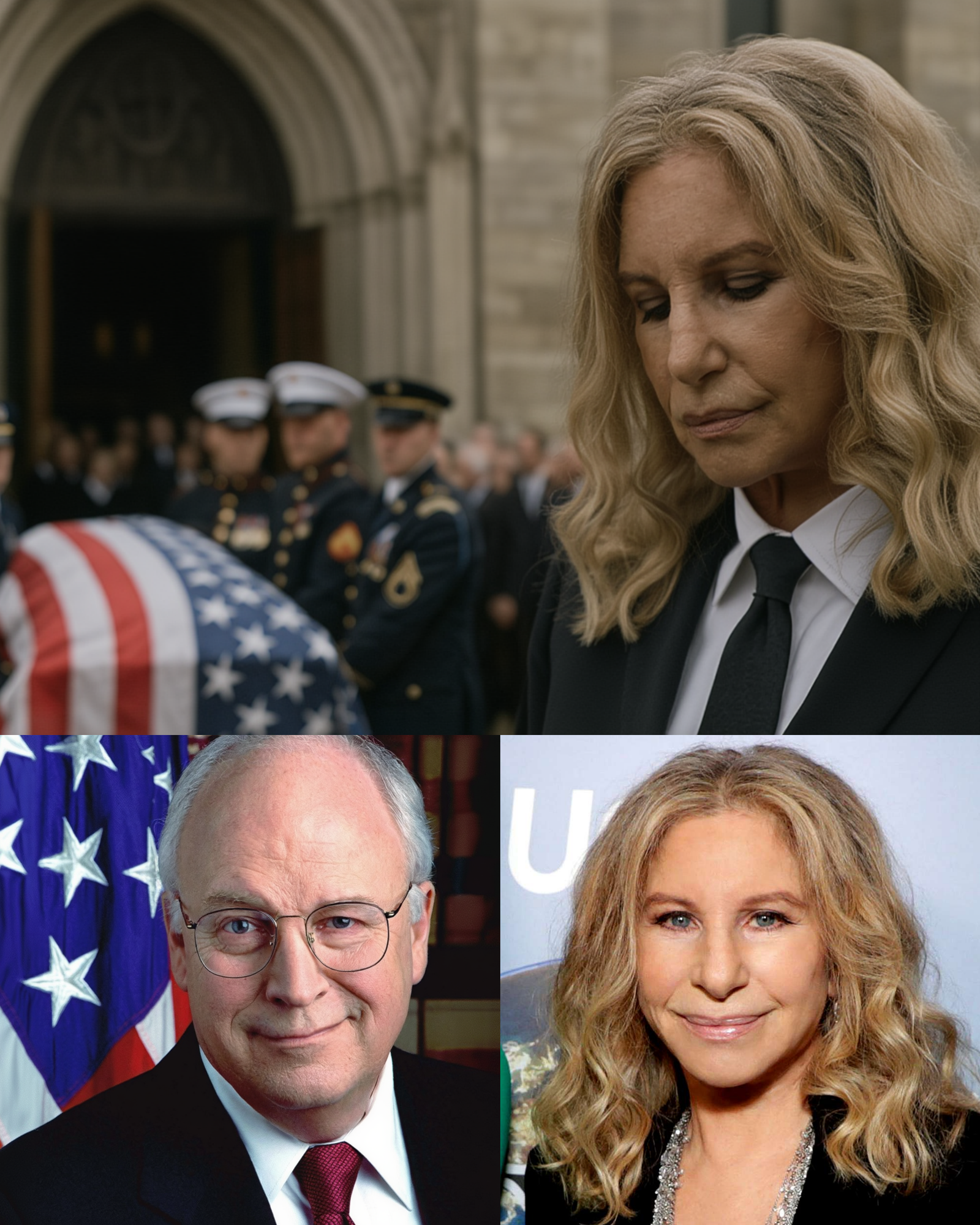 As news of former Vice President Dick Cheney’s passing spread across the United States, Barbra Streisand stepped into a rare national moment of reflection. The singer and actress, known for her powerful voice and sharp intellect, delivered a heartfelt televised address that instantly resonated with millions of viewers. Her tone — respectful yet introspective — brought a sense of humanity to a complex political legacy that continues to divide and define America.