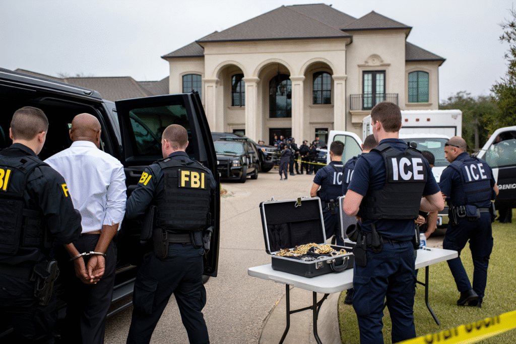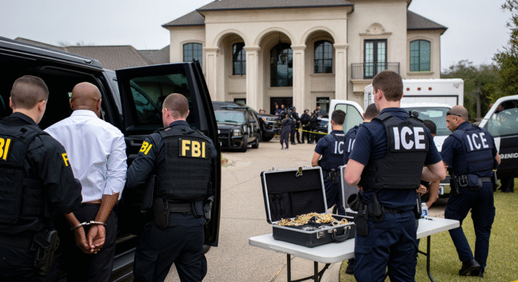 The investigation ultimately led to coordinated raids across several locations in Texas, including the Houston mansion that authorities say served as a key operational hub. During the operation, agents searched properties, warehouses, and transport facilities linked to the suspected network.