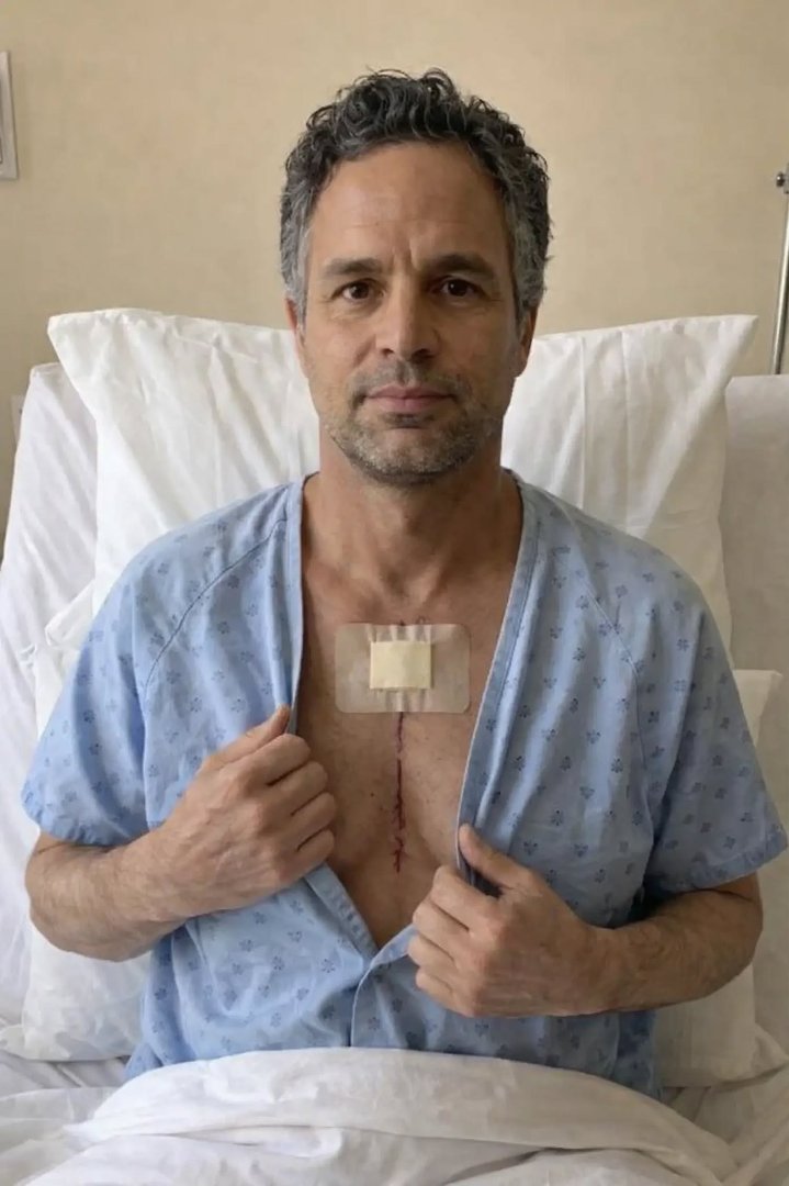 No buildup. No teaser. Just a single image—posted quietly, almost cautiously—onto Mark Ruffalo’s official account. Within seconds, it spread like wildfire. There he was, lying in a hospital bed, pale but unmistakably alert, a faint, determined smile breaking through the sterile stillness of the room.